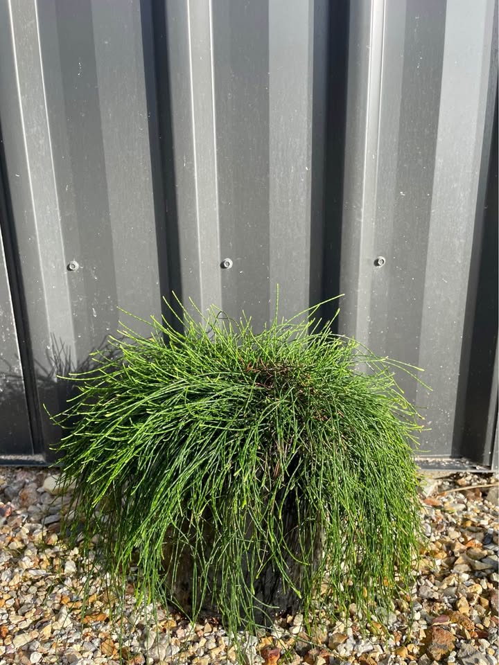- Foliage: Dense, fine trailing green stems (appears leafless)